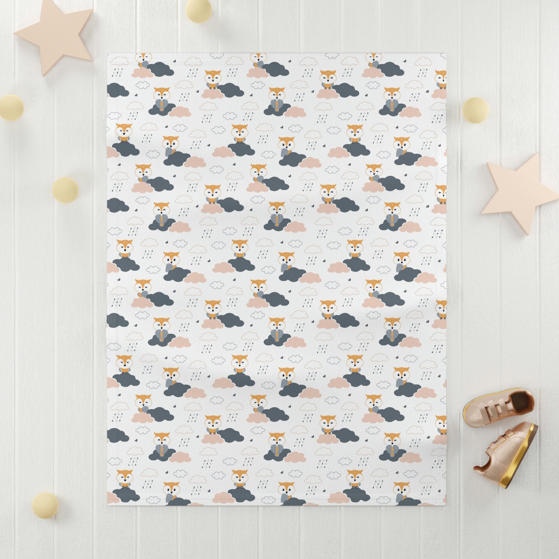 This soft fleece baby blanket is the perfect addition to any baby's essentials. Made from high-quality, ultra-soft fleece material, this blanket is both warm and gentle on baby's delicate skin. Measuring 30 inches by 40 inches, it is the perfect size for swaddling newborns or snuggling up with a toddler. This blanket comes in a choice of five beautiful designs, ranging from boho rainbows to fun and whimsical forest animals patterns. The designs are carefully crafted to capture the essence of childhood, making this blanket not only functional but also aesthetically pleasing.