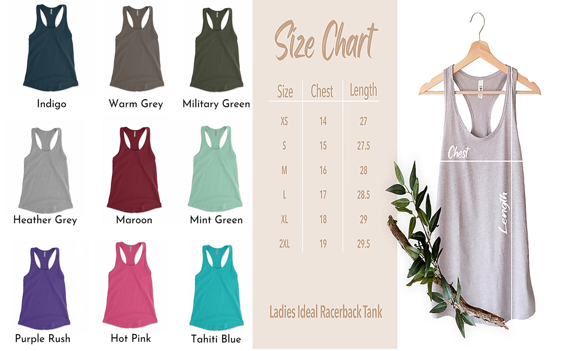 This racerback tank is available in size XS - 2XL, so no matter what your size we have a tank for everybody!
