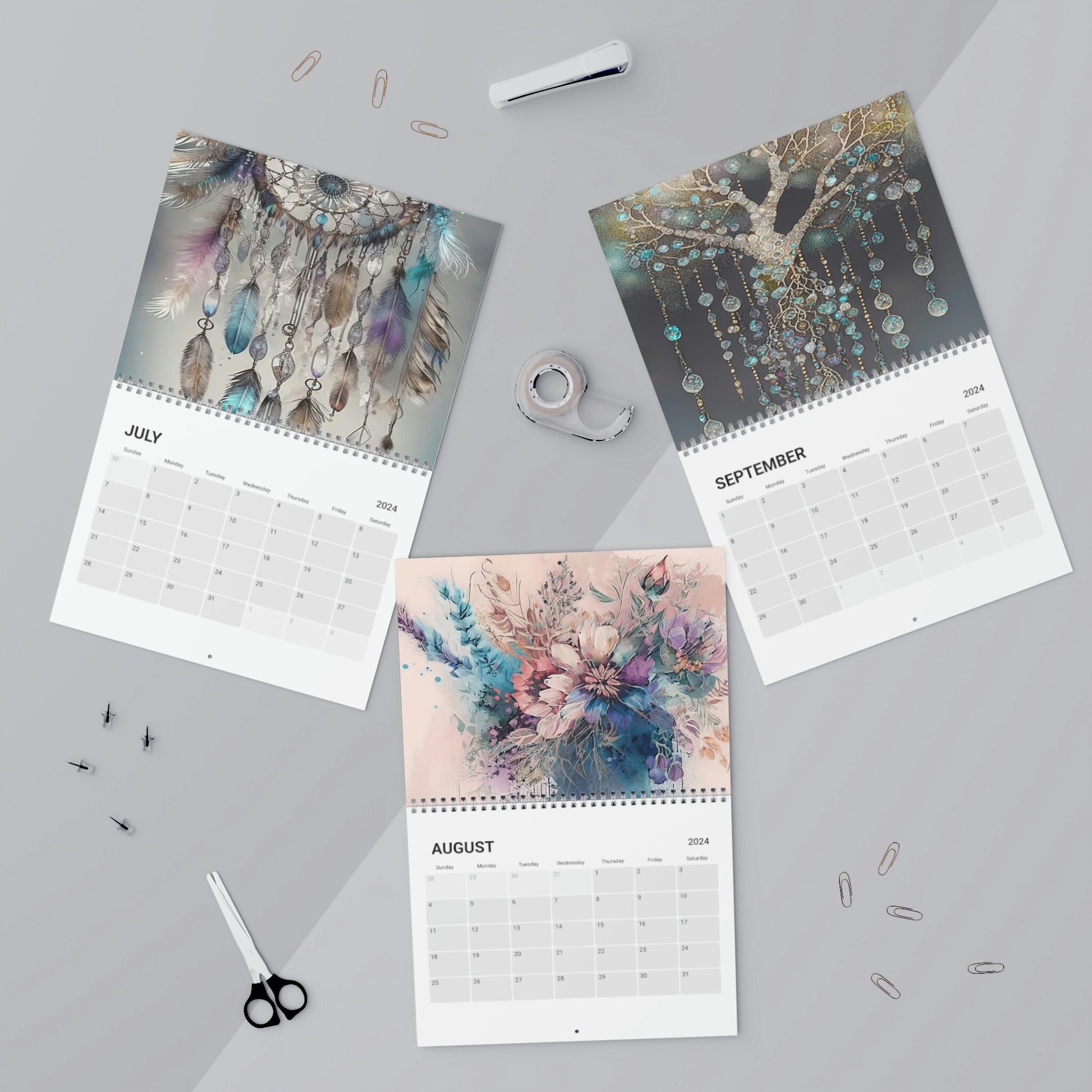 Beautiful Watercolor Boho Vibes 2024 Calendar, 12 month calendar, Wall Calendar
