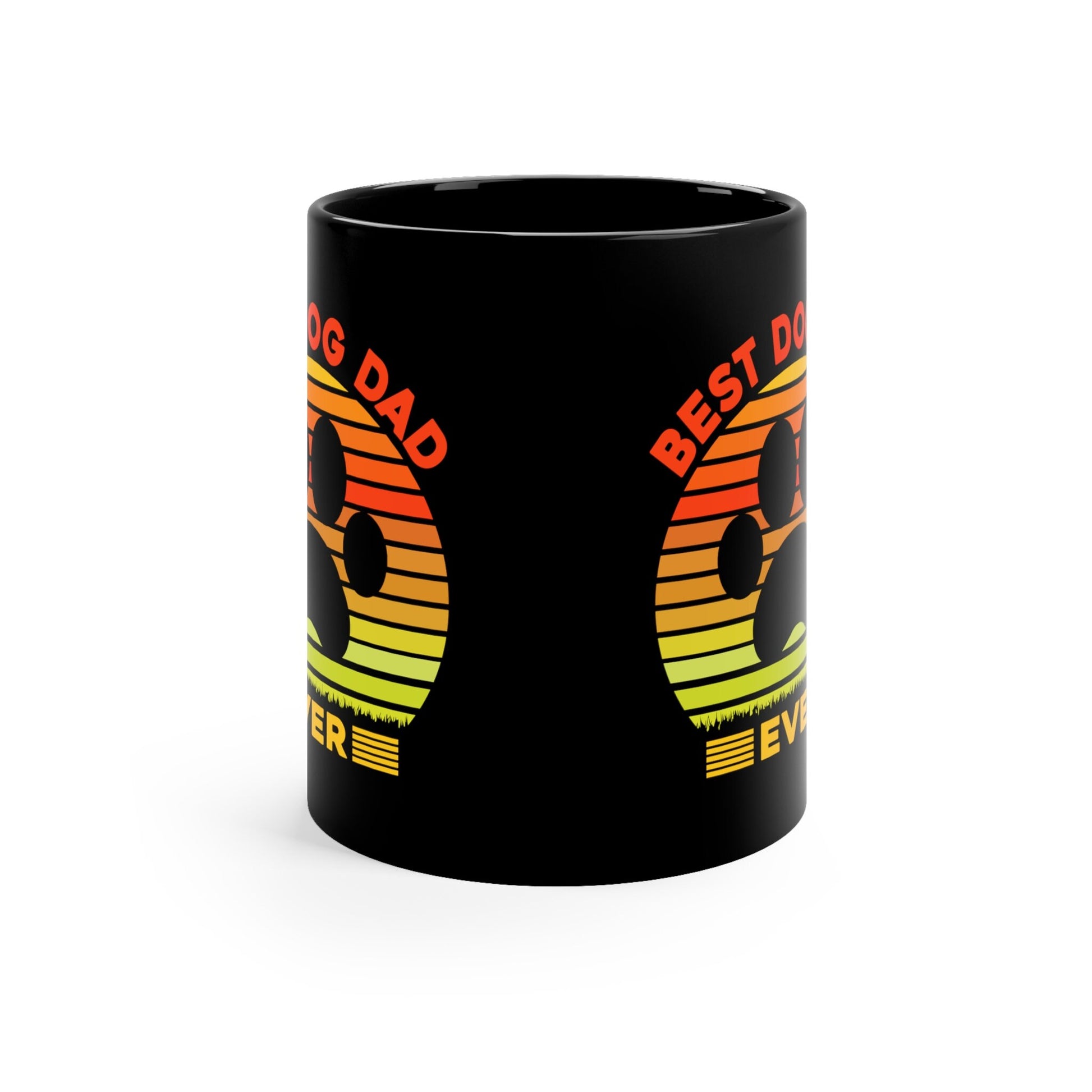 Introducing our Best Dog Dad 11-ounce black ceramic mug, a delightful blend of retro charm and heartfelt appreciation for dog dads everywhere. This exquisitely designed mug showcases a vintage-inspired style, featuring a prominent paw print and the endearing phrase "Best Dog Dad Ever". This mug captures the essence of a devoted dog owner and celebrates their unwavering love for their furry companions making it a must have for anyone seeking a meaningful gift for a dog-loving father figure in their life.