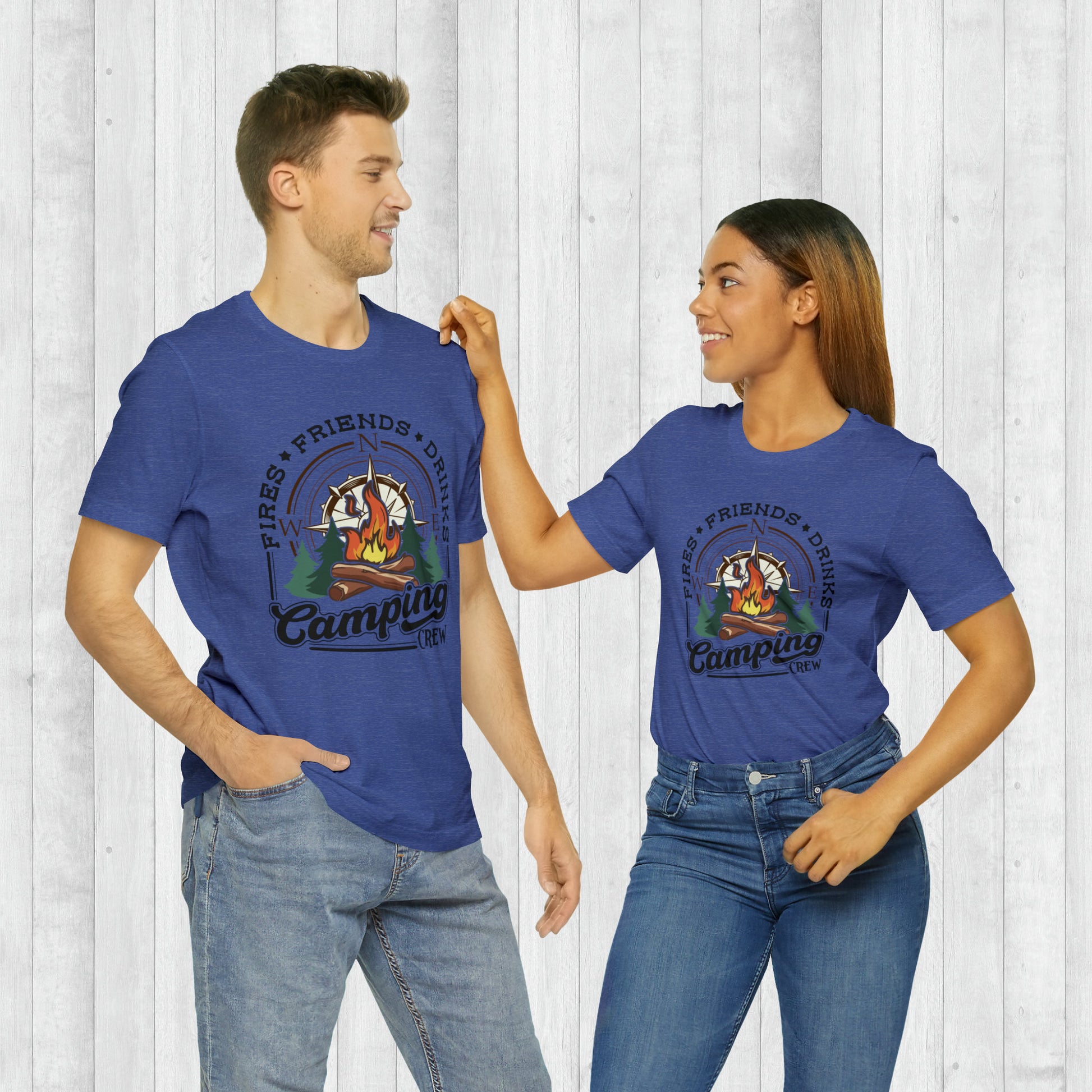 Introducing our Camping Crew-themed T-shirt, meticulously designed for outdoor enthusiasts seeking comfort and style. Crafted with Airlume combed and ringspun cotton, this tee offers an unparalleled softness and durability that guarantees long-lasting wear. The eye-catching design showcases a captivating campfire layered on a compass rose, symbolizing the adventurous spirit within. Featuring the spirited slogans "Fire. Friends. Drinks" and "Camping Crew," this tee embraces the essence of shared outdoor experiences and the cherished memories they create.