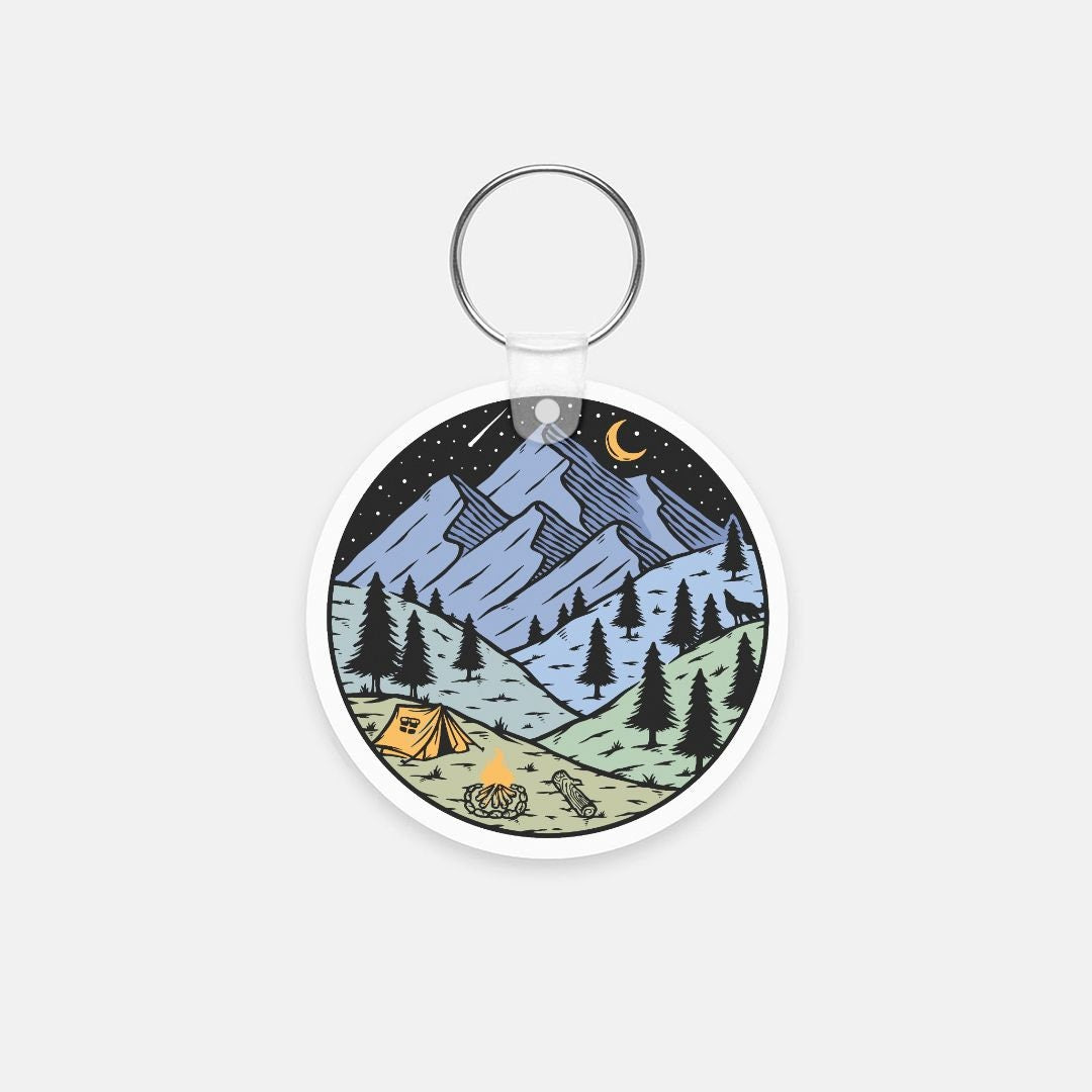 Camping Under the Stars Round Key Chain, Nature Lover Key Ring