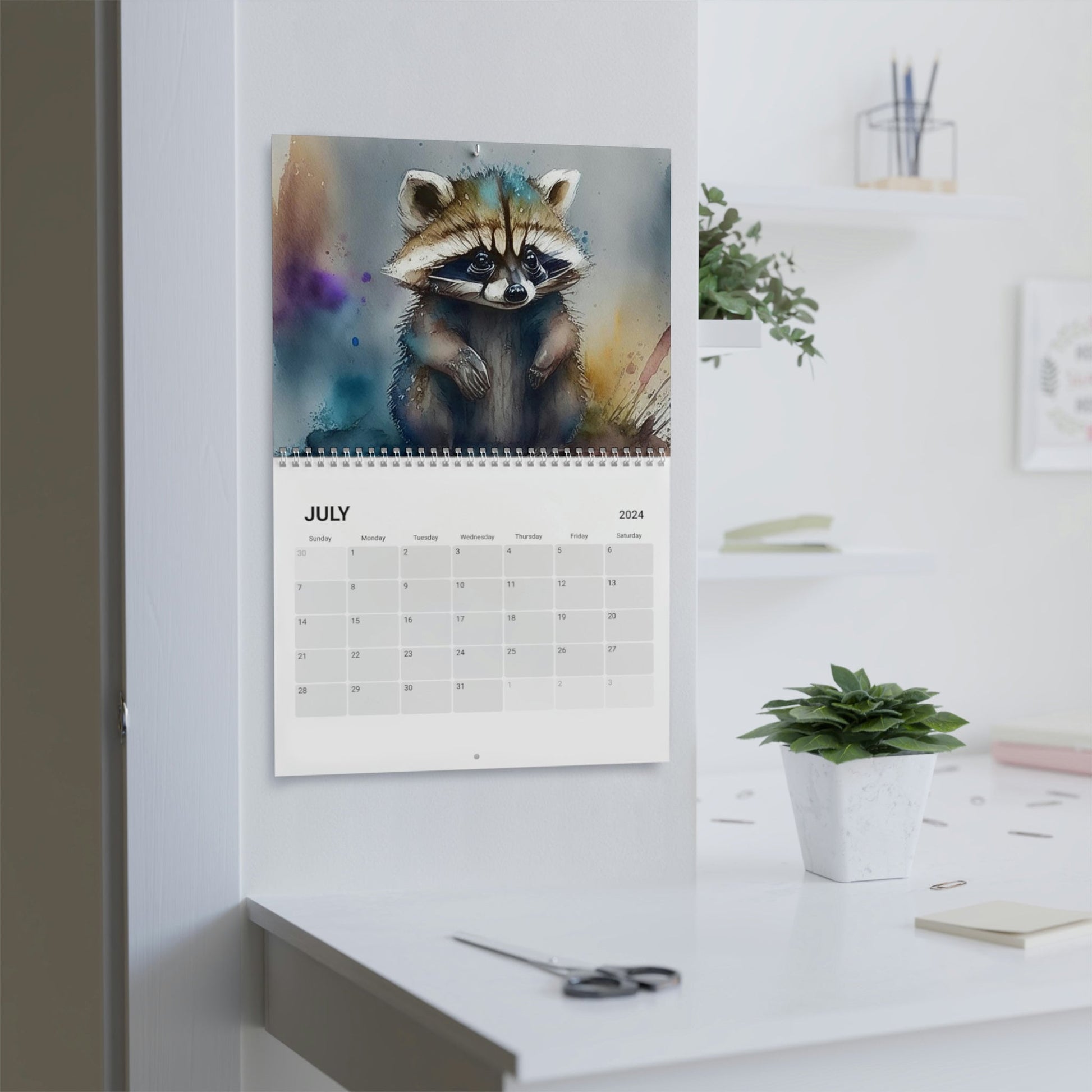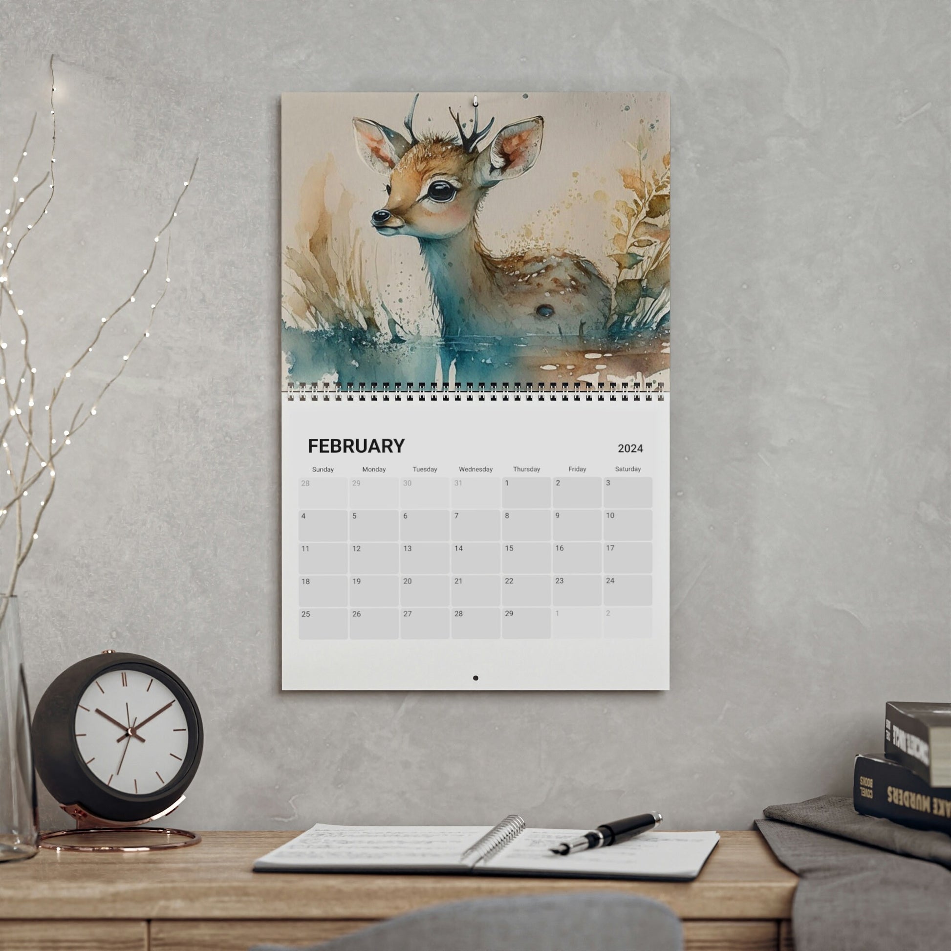 Our 2024 wall calendar featuring watercolor baby forest animals is a charming and delightful addition to any home or office. Each month features a beautifully painted watercolor depiction of a different baby forest animal, including playful foxes, curious raccoons, and adorable fawns. The calendar is not only visually appealing but also practical, with each date square providing ample space to jot down important appointments, reminders, or notes. This calendar is perfect for nature-lovers, animal enthusiasts, and anyone looking for a whimsical touch to their daily routine.