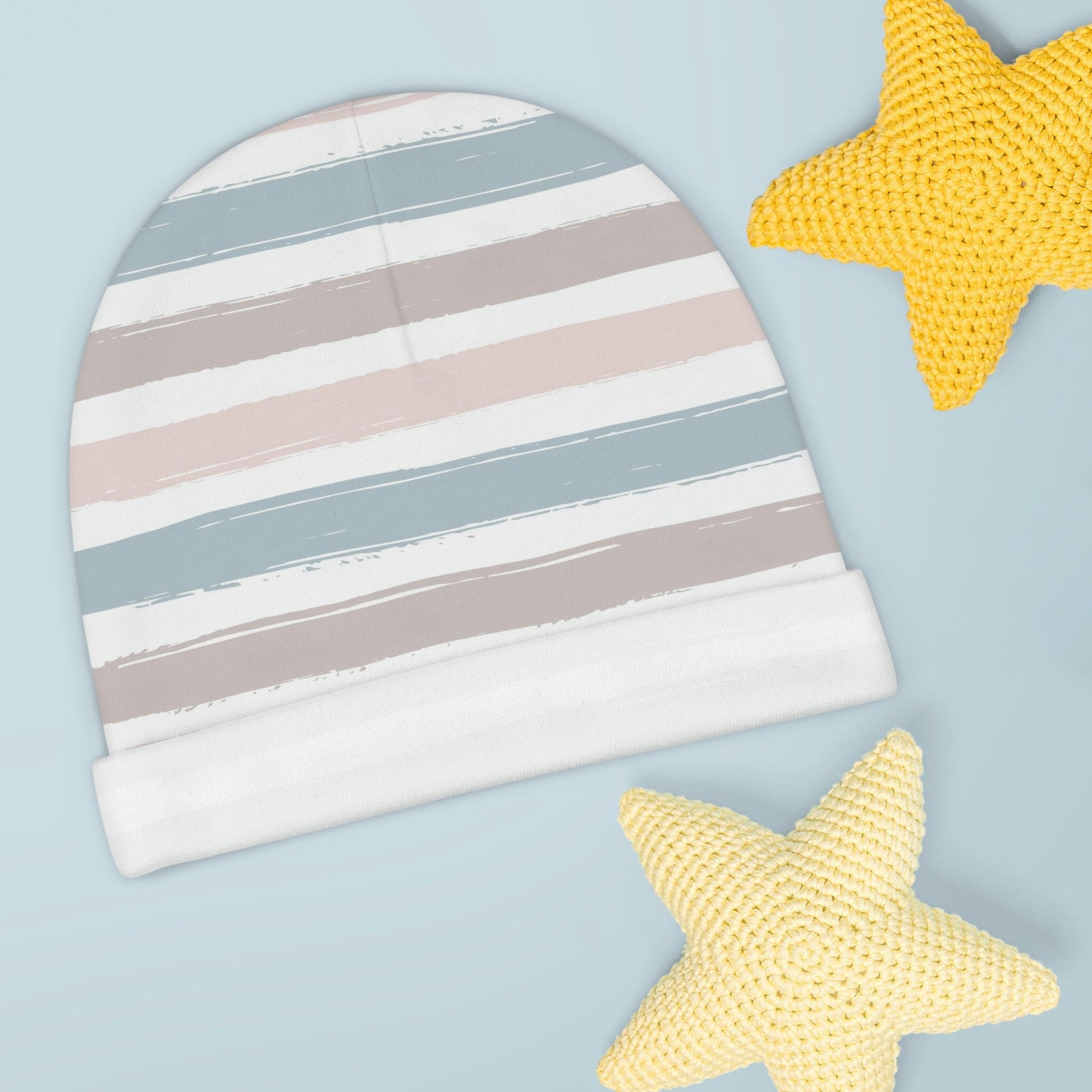 This gender neutral ferns beanie is perfect for you new little one and will fit up to about 6 months. Much like all of your other baby gear and clothing, you can never have enough little beanies. The interlock knit design give just the right amount of stretch while still maintaining the beanie's shape.