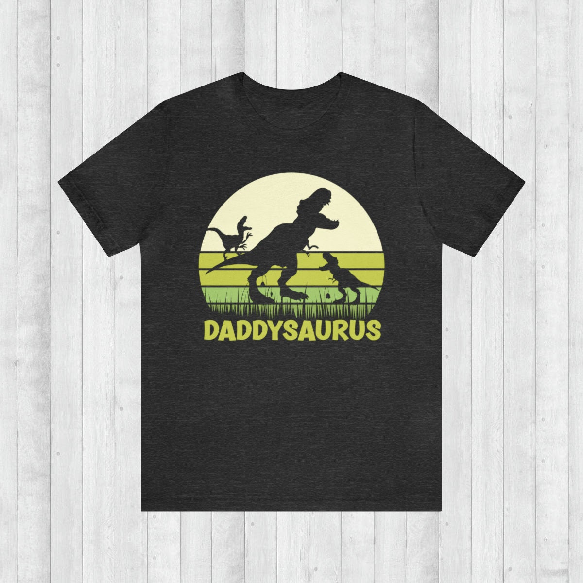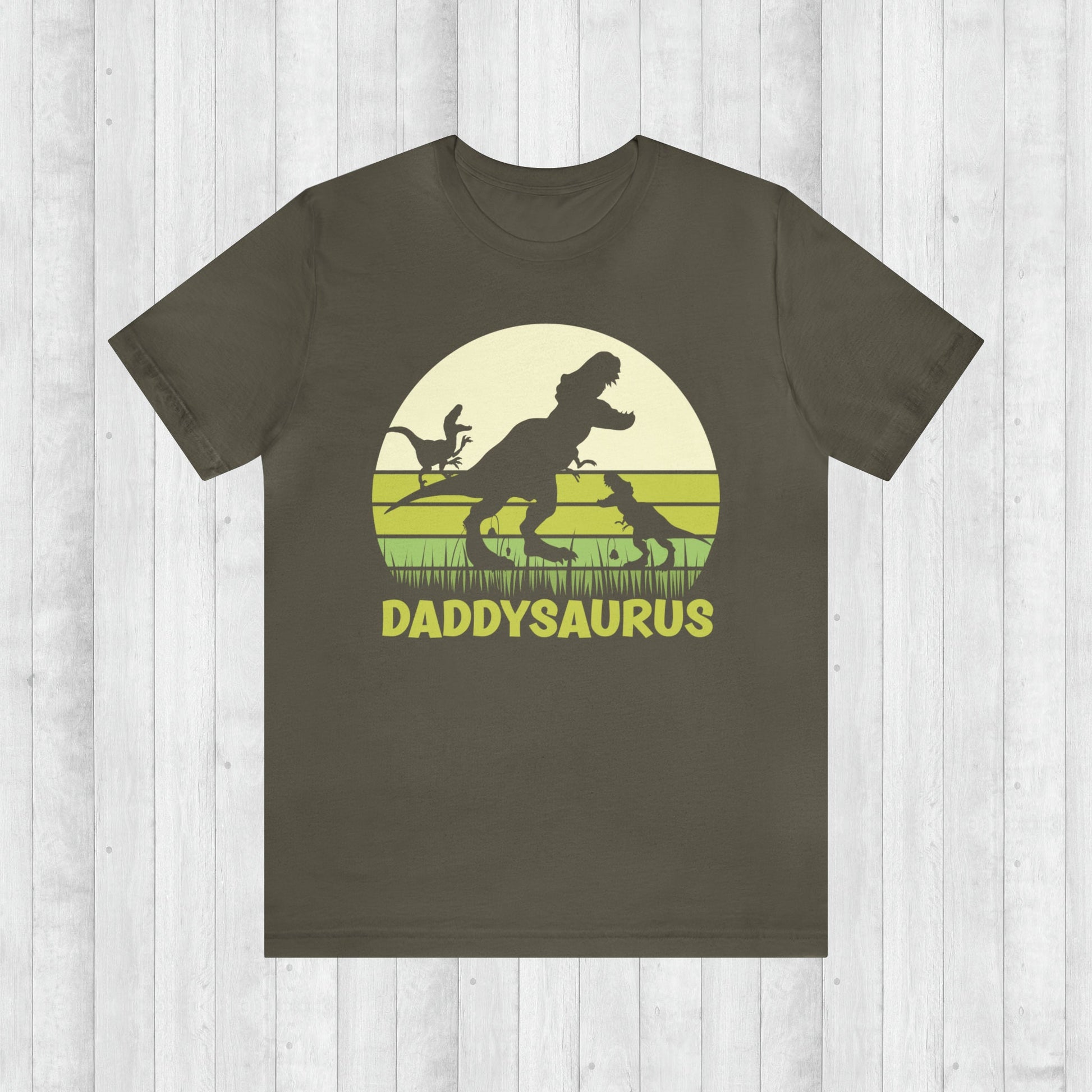 Introducing our "Daddysaurus" T-shirt, a delightful blend of Retro style and prehistoric charm! This eye-catching design features a majestic T-rex proudly standing tall, flanked by two adorable smaller dinosaurs, all set against a vibrant backdrop. The retro-inspired aesthetic lends a touch of nostalgia, making it a perfect choice for dads who appreciate both timeless style and the wonders of the dinosaur age.