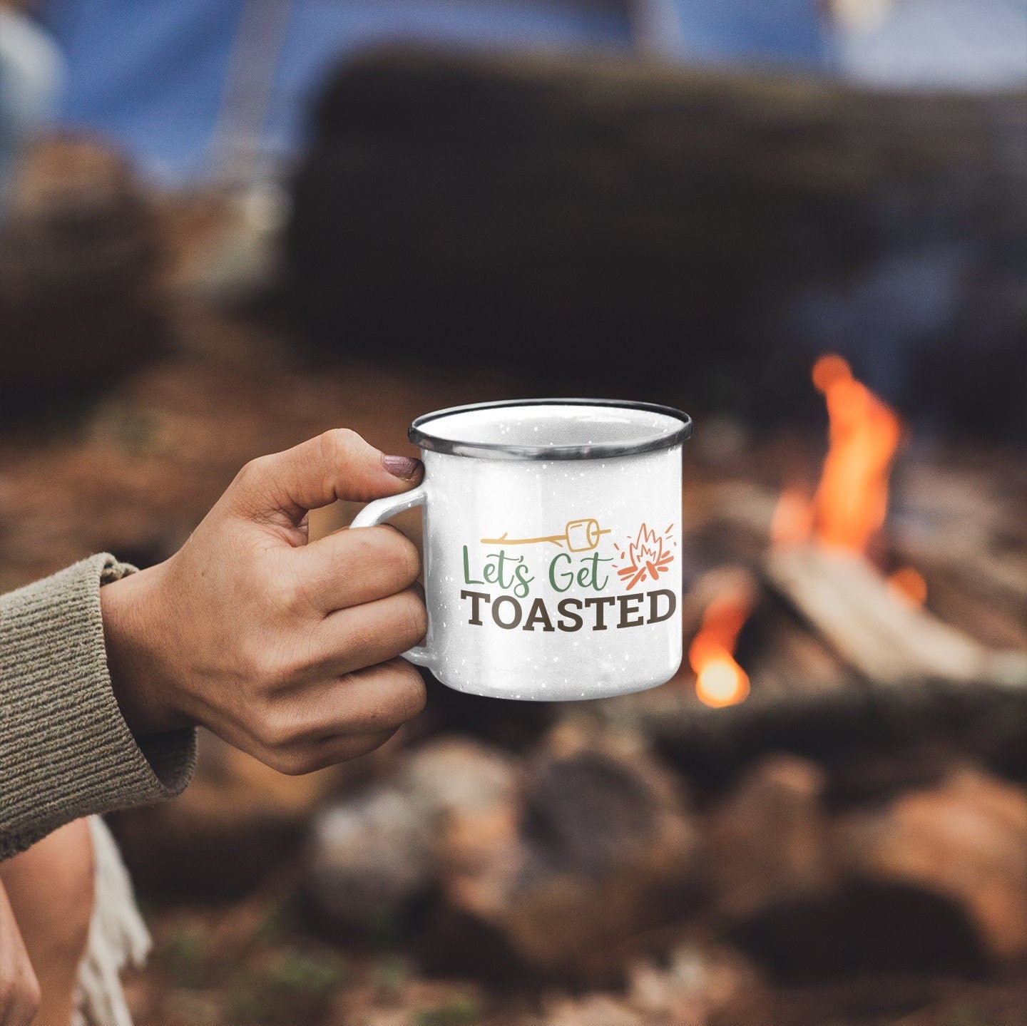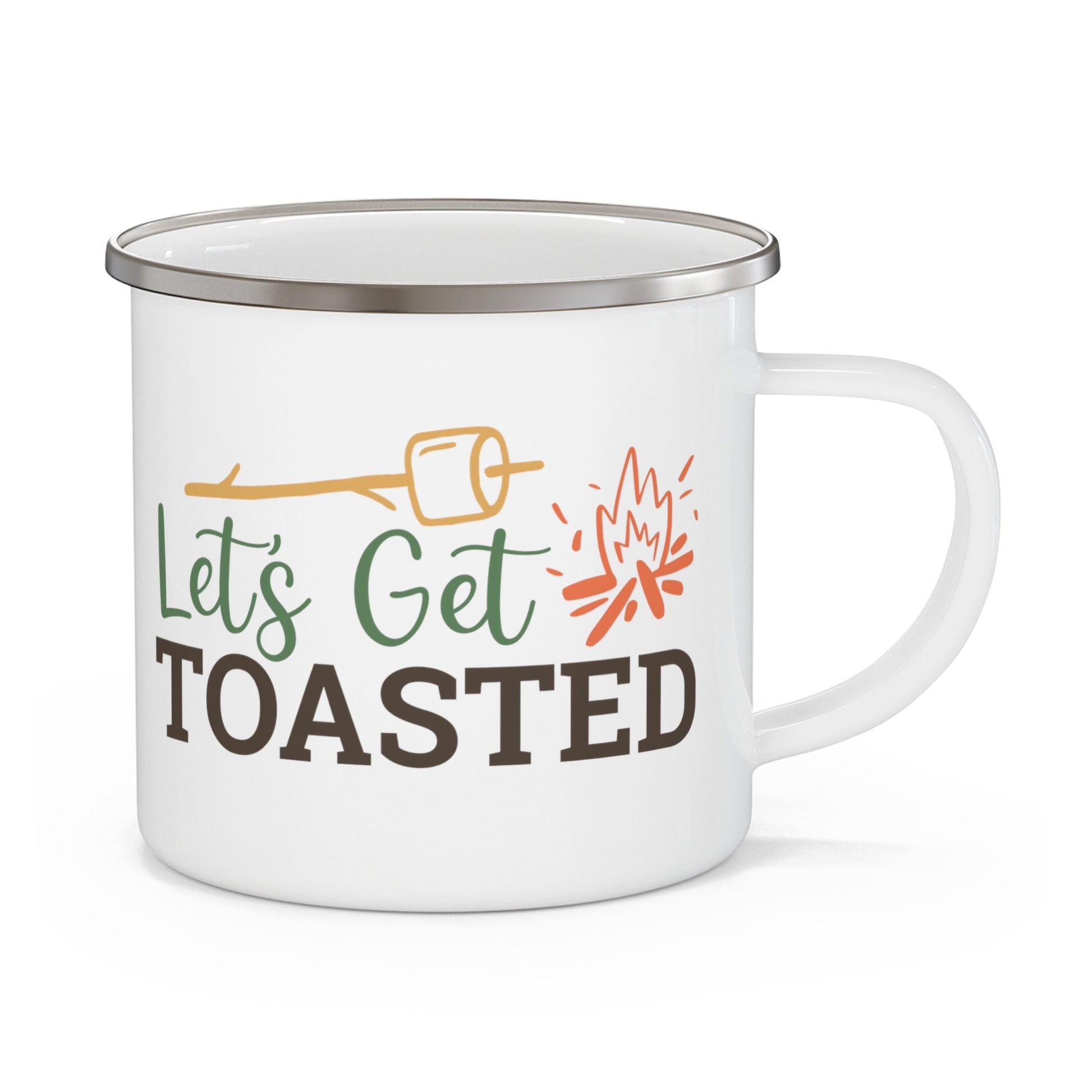 Let's Get Toasted Enamel Camping Mug, 12 oz stainless steel mug, funny camping mug, cute outdoor lovers mug