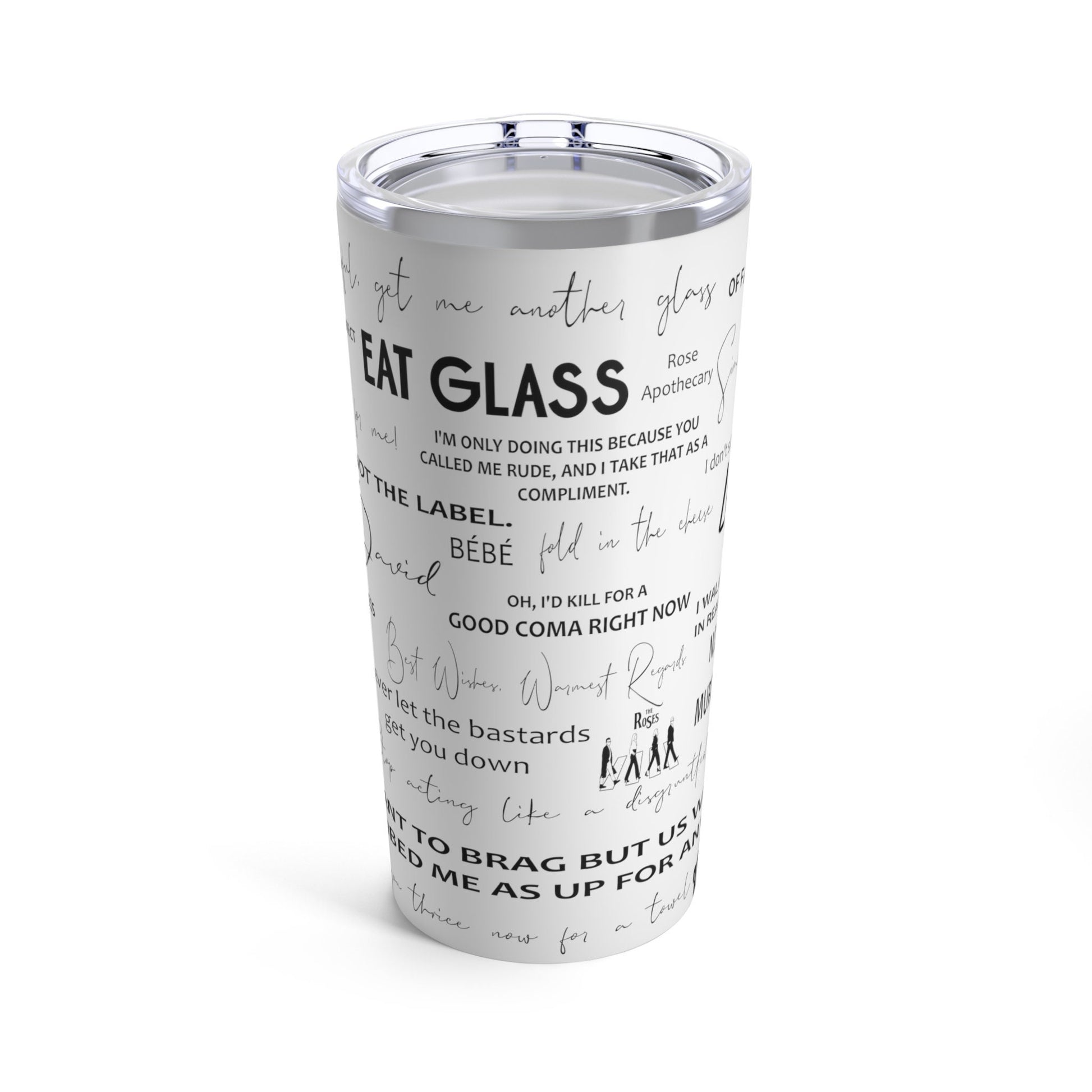 This stainless steel tumbler features iconic Schitts Creek quotes, this tumbler is a must-have for fans of the series. Whether you're treating yourself or looking for the perfect gift for the Schitts Creek fan in your life, this Shitts Creek skinny steel tumbler is sure to be a hit.