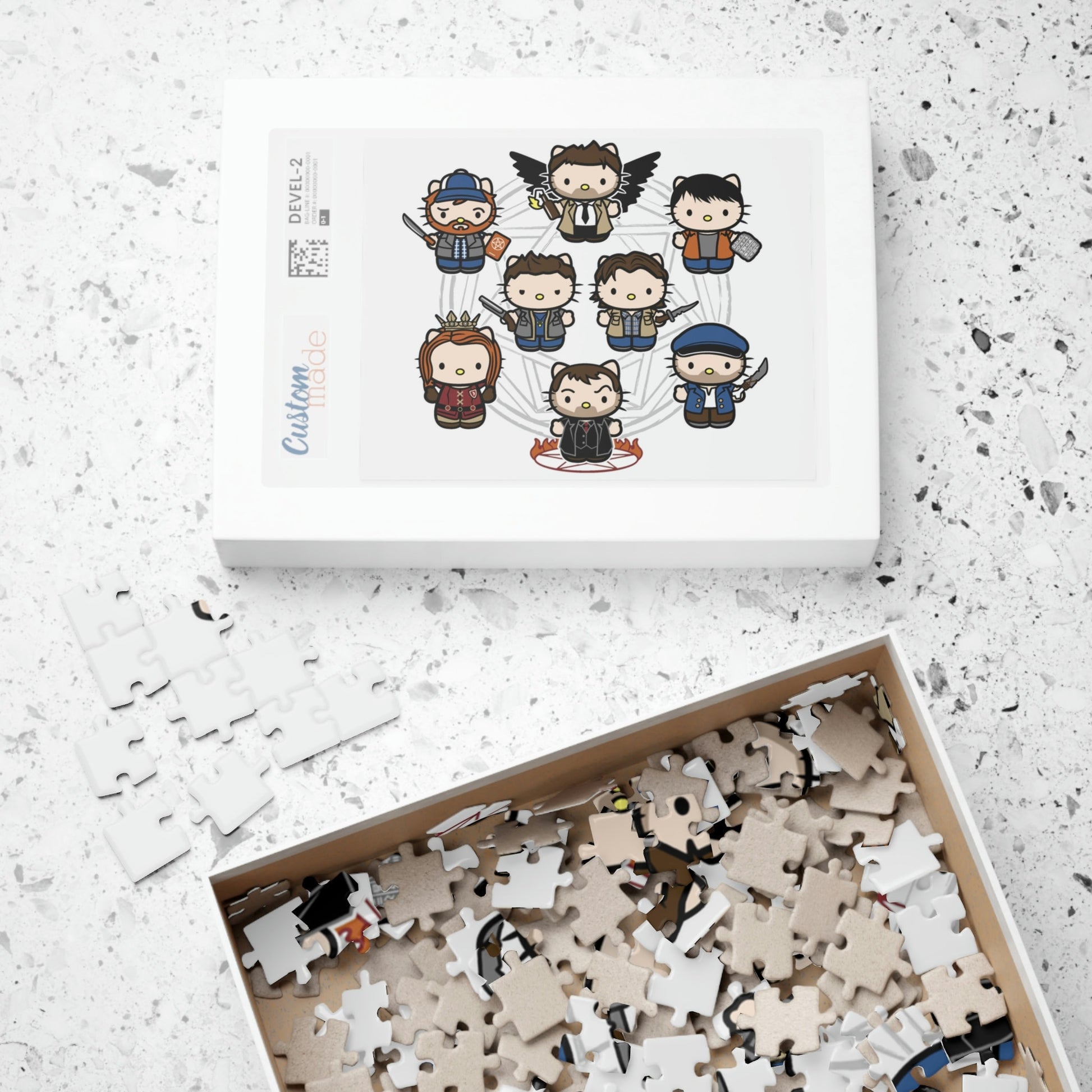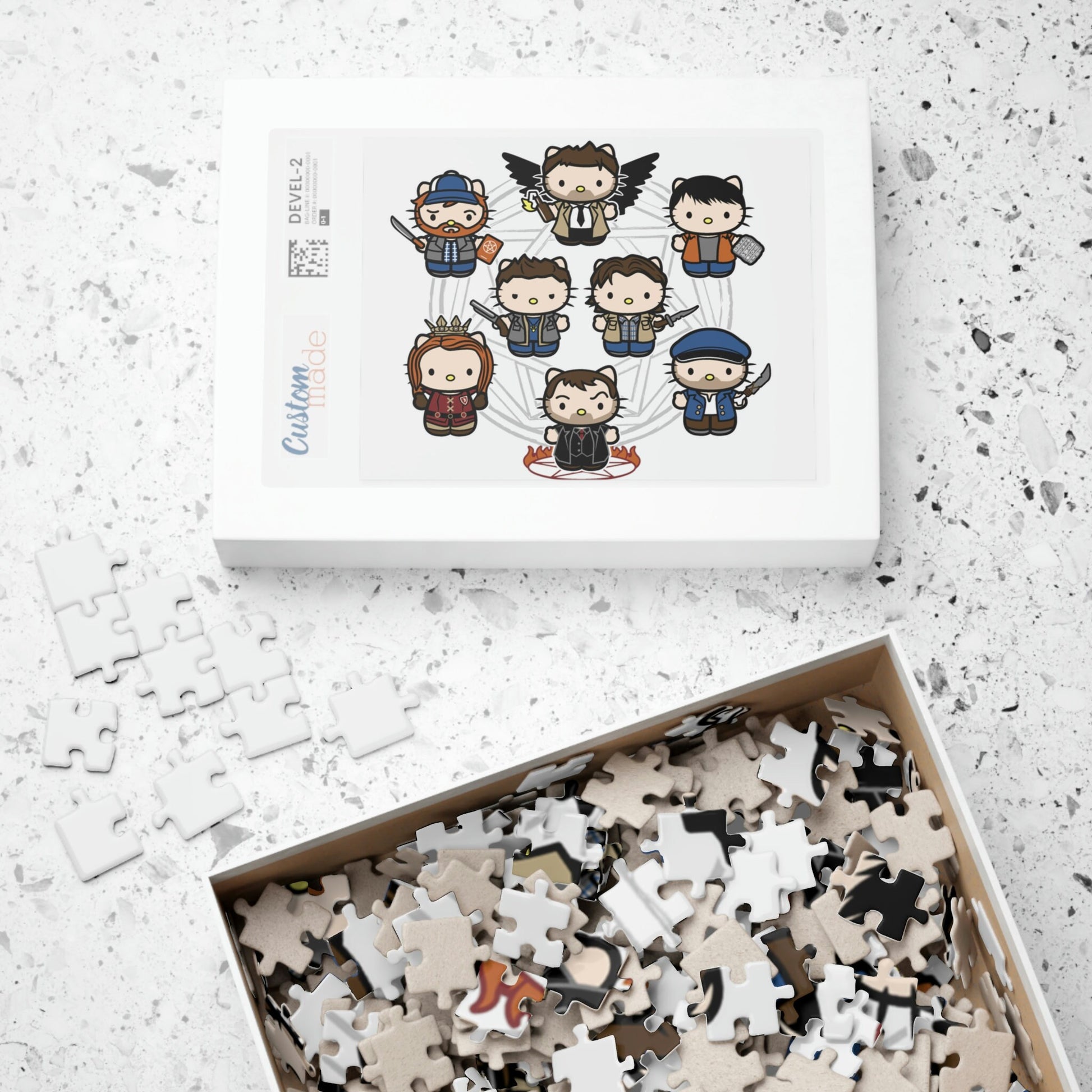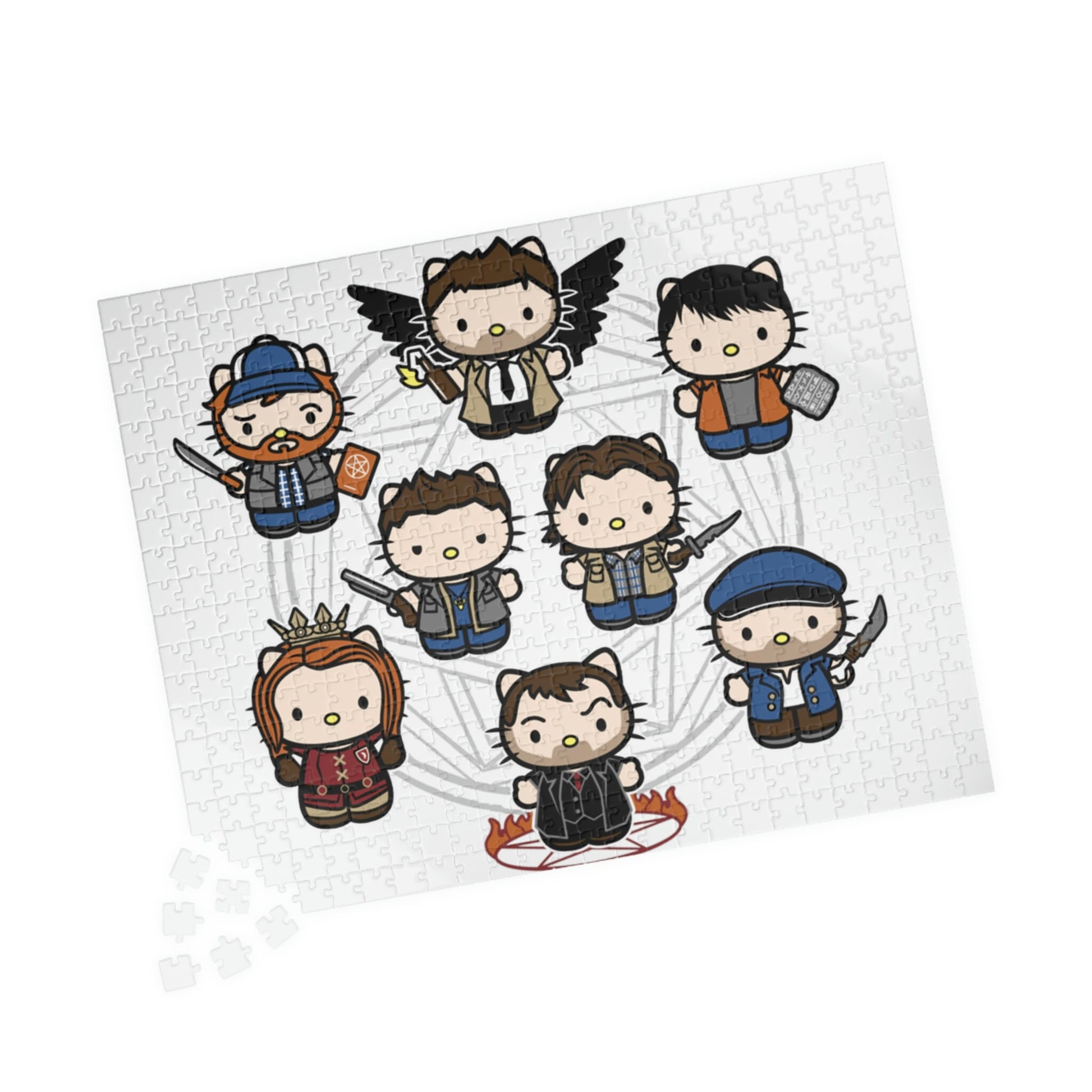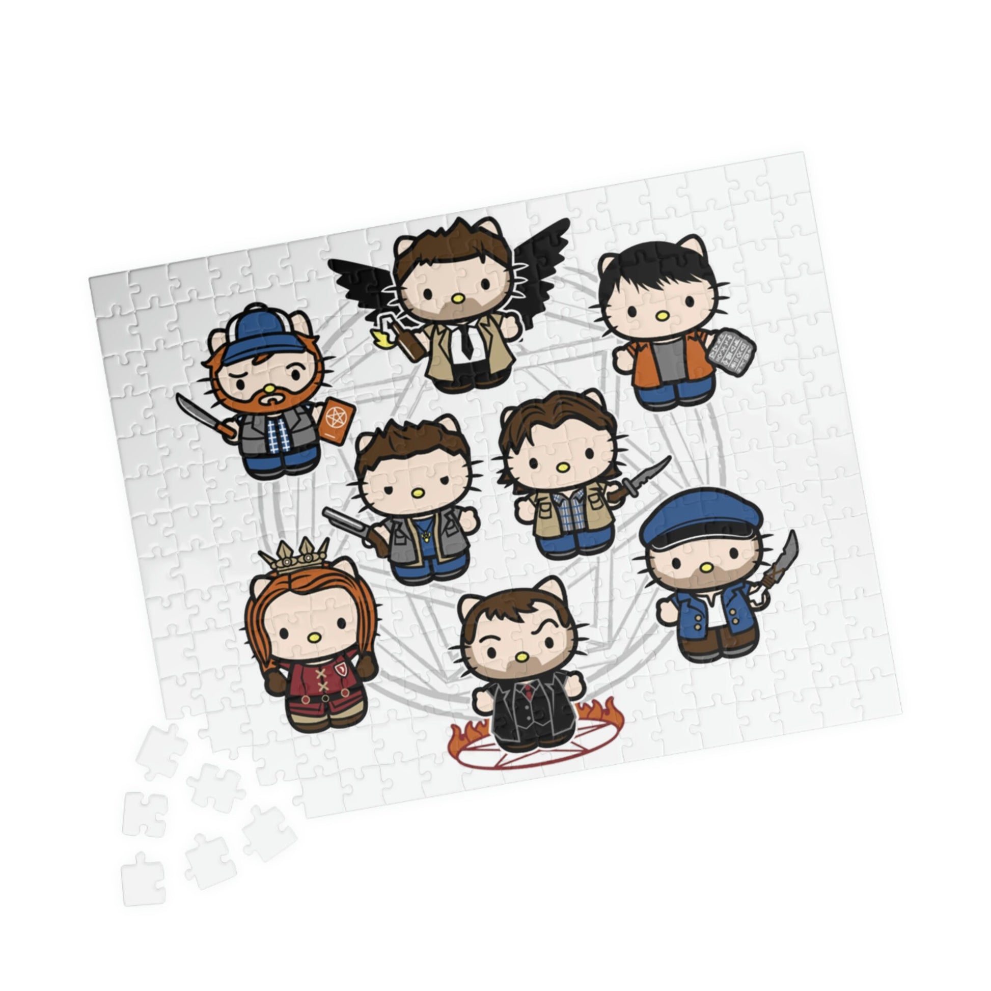 Hey hey hey, the gang's all here! Hours of fun to be had putting together this puzzle with all those Supernatural characters you love and love to hate. Oh and look...they're kitties, isn't that awesome.